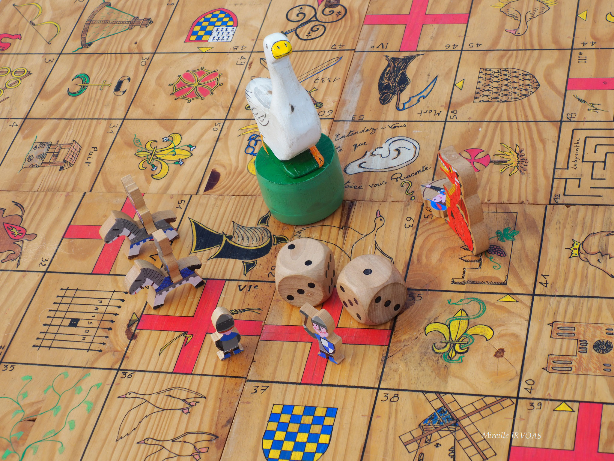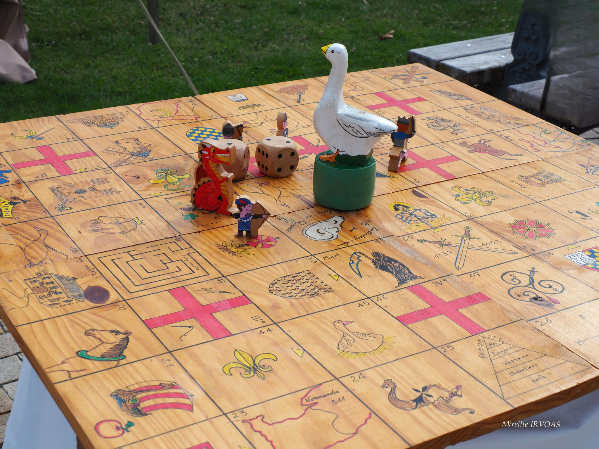 Le Jeu de l'oie géant retraçant l'histoire du moyen-âge.